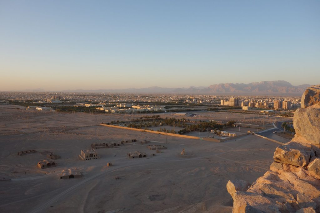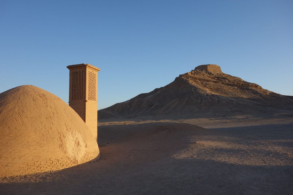 Yazd is a pretty chilled out city surrounded by deserts. The more interesting sights relate to its Zoroastrian history, and you can visit both a Zoroastrian fire temple and climb up the Tower of Silence, where they practiced sky burials (until 1970s), i.e. leaving the bodies on a platform to be picked apart by vultures.